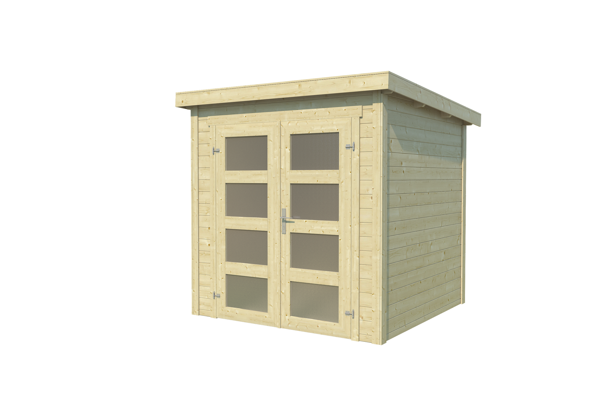 The Chic-Shed Fresno is a versatile 6 1/2' x 6 1/2' solid wood garden shed, perfect for maximizing smaller outdoor spaces. With its elegant window and double glass-paneled door, it serves as an ideal solution for storage . Crafted from 100% Nordic wood, the Fresno can be stained or painted to match any exterior style. The prefabricated kit includes precisely cut pieces and all necessary hardware, ensuring a straightforward assembly process with just a few basic tools.